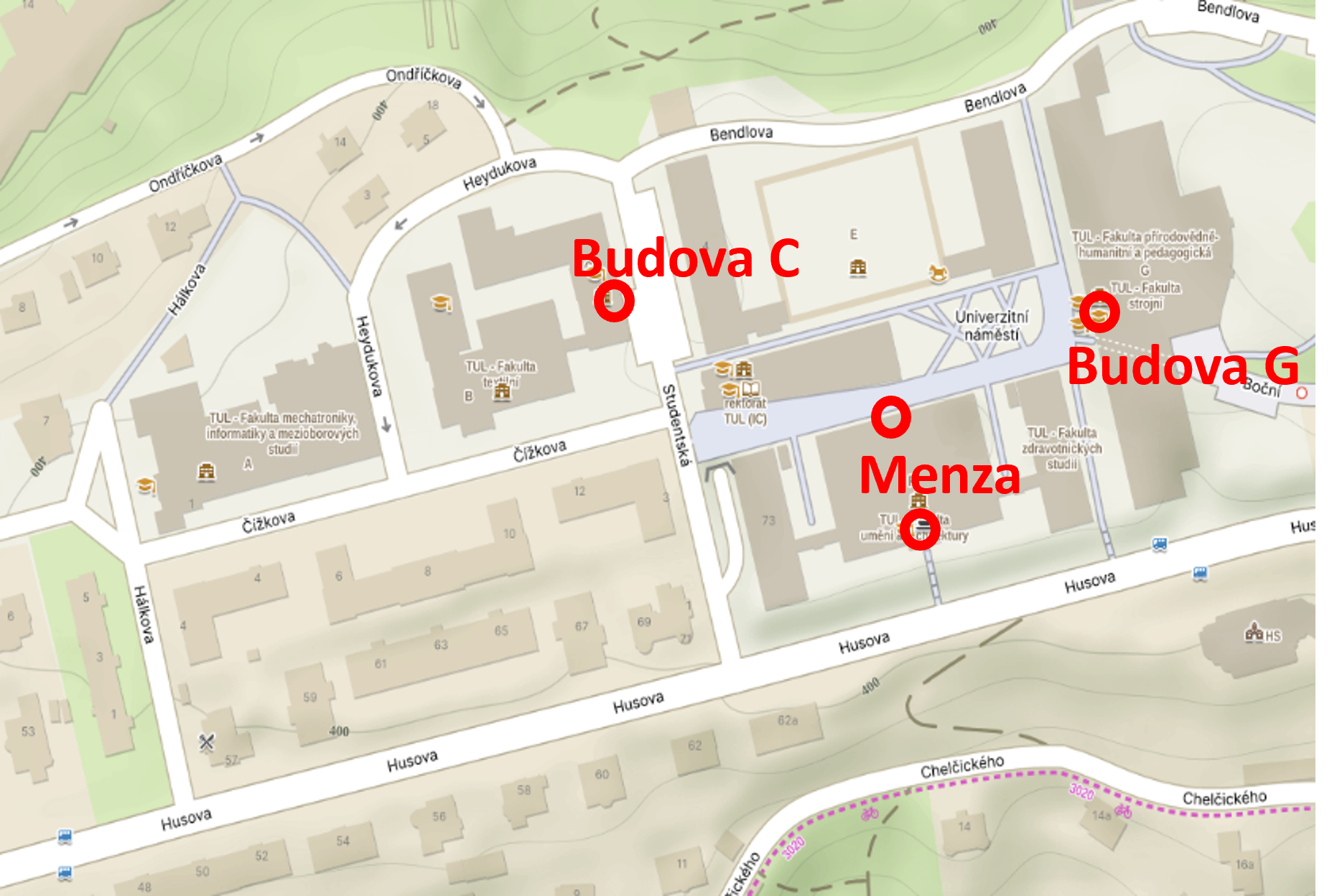 - By car: You can park for free in the TUL area around Studentská Street, or in the surrounding area if there is a free spot, or at the place of accommodation, according to the accommodation provider's arrangement.